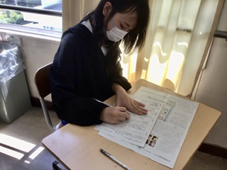 国語で「和の文化を受け継ぐ 和菓子を探る」という説明文を学習しています。筆者が何を伝えたいのか、序論、本論、結論ごとに内容をまとめ、そこから読み取っていきます。