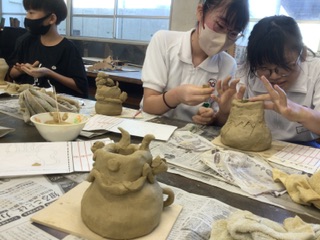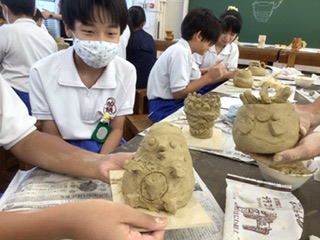 6年生 土器でドキドキ(2組 9月16日) 公開日 2025/09/16 更新日 2025/09/16 各学年から 講師の方を招いて、土器づくりに挑戦です。まずは手びねりで形を整えてから、自分で考えた部品や飾りを取り付けていきます。個性あふれる土器がたくさん生まれています。 6年 特別支援学級