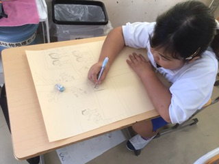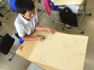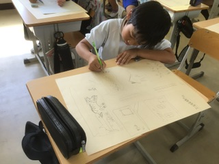 4年生 読書感想画(9月29日) 公開日 2025/09/29 更新日 2025/09/29 各学年から 「おおきな きが ほしい」を読んで、自分ならどんな木が欲しいのかを絵にしています。今日は、アイディアスケッチを画用紙に慎重に描き写しています。 4年 特別支援学級