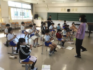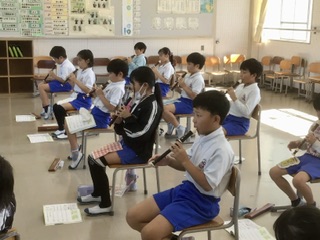 3年生 リコーダーの響き(2組 10月17日) 公開日 2025/10/17 更新日 2025/10/17 各学年から 拍子の感じを生かして「あの雲のように」をリコーダーで演奏しています。指で穴をしっかりと押さえて、一音一音を綺麗に響かせています。 3年