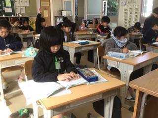3年生 あまりのある割り算(1組 10月29日) 公開日 2025/10/29 更新日 2025/10/29 各学年から 練習問題をどんどん解いて、あまりのある割り算を得意にしようと頑張っています。みんな、自分のペースで問題を解いています。正しく計算できるようになれると良いですね。 3年