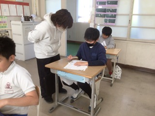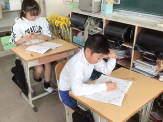 5年生 算数テスト(1組 10月29日) 公開日 2025/10/29 更新日 2025/10/29 各学年から 分数のテストです。図を読み取ったり、小数や整数を分数に直したりと、たくさんの問題が並んでいます。みんな落ち着いて考えて解いています。早く終わった子は、算数の友を使って復習に取り組んでいます。 5年