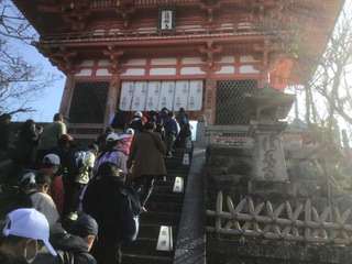 まずは清水寺の見学です。青空に紅葉がとても綺麗です。