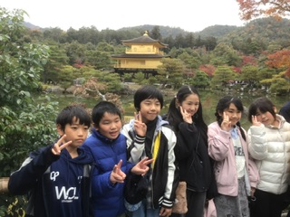 6年生 金閣 公開日 2025/11/27 更新日 2025/11/27 各学年から たくさんの人が見学していました。曇り空でも金箔がとてもきれいです。 京都の見学を終え、奈良に向かいます。 6年 特別支援学級