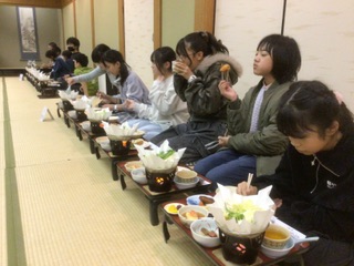 6年生 夕食 公開日 2025/11/27 更新日 2025/11/27 各学年から みんなで集まって夕食です。唐揚げ、ハンバーグ等たくさんの料理が並んでいます。お腹いっぱいになりました。 食事の後は、入浴、加飾体験です。 6年 特別支援学級