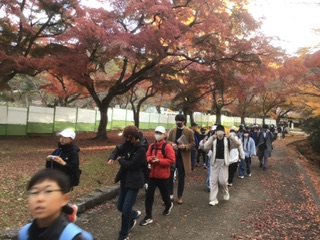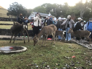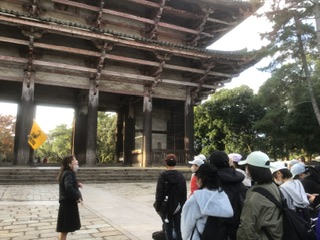 宿を出ると早速鹿に出会いました。美しい紅葉を見ながら移動。南大門に到着です。