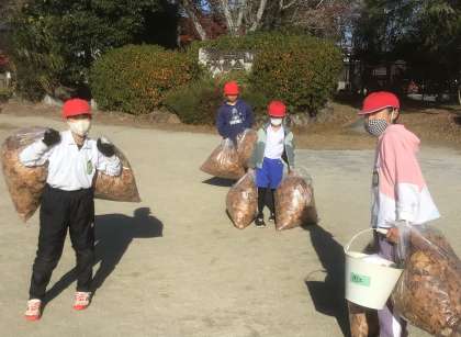 掃除、頑張っています(12月10日) 公開日 2025/12/10 更新日 2025/12/10 特別活動 外掃除の人たちが、たくさんの落ち葉を片付けて校内を綺麗にしてくれています。ありがとうございます。