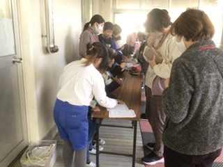 やまもも スーパーやまもも(12月11日) 公開日 2025/12/11 更新日 2025/12/11 各学年から 商品は、大根、人参、ほうれん草です。今日も大盛況で、大根とほうれん草はあっという間に売り切れてしまいました。 特別支援学級