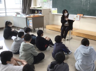 読み聞かせ(12月19日) 公開日 2025/12/19 更新日 2025/12/19 地域学校共働本部 「さとの声」のみなさんによる今年最後の読み聞かせです。素敵な本をたくさん読んでいただきました。ありがとうございます。 地域学校共働本部