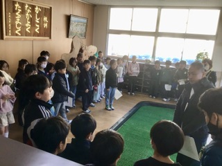 総合的な学習で取り組んだ桃の学習。今日は、お世話になった講師の方に感謝する会を開きました。自作の桃かるたや桃トランプで一緒に楽しんだ後、桃新聞をプレゼントしました。最後は全員で玄関でお見送りしました。たくさんのことを教えていただき、ありがとうございました。