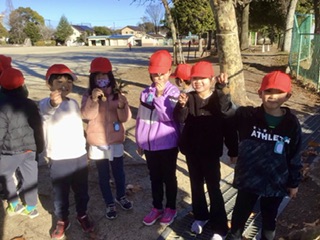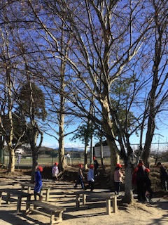生活科の授業です。運動場を歩いて、冬を見つけています。