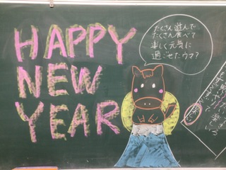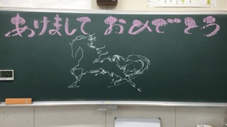 あけましておめでとうございます。今日から学校が始まりました。楽しい冬休みを過ごした加納っ子たち、みんな笑顔で元気よく登校して来ました。教室の黒板にかかれた担任のメッセージが出迎えます。