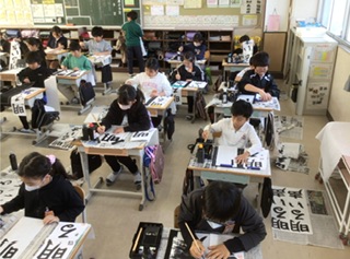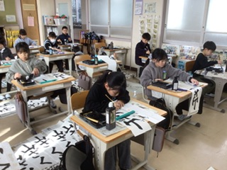 3、4年生 書き初め大会(1月7日) 公開日 2026/01/07 更新日 2026/01/07 各学年から 3年生は毛筆での書き初めです。文字のバランスが難しいです。 4年生。練習した紙が教室いっぱいに並べられています。 3年 4年