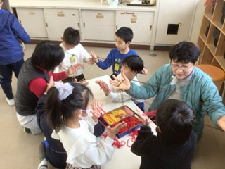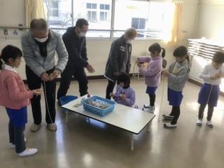 1年生 日本の遊びを楽しもう(1月14日) 公開日 2026/01/14 更新日 2026/01/14 各学年から コーディネーターの方をはじめ、たくさんの地域の方が講師として来て下さいました。けん玉、あやとり、お手玉、こま回し、メンコなど、日本に伝わる遊びを楽しみました。何度も挑戦して、みんな、どんどん上手になっています。 1年 特別支援学級