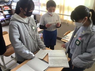 6年生 プレゼンテーションに挑戦(2組 1月16日) 公開日 2026/01/16 更新日 2026/01/16 各学年から 学校をより良くするために調べたことを、プレゼンテーション形式で発表しました。直前までグループで内容の確認をしています。発表は大きな声でわかりやすい説明はもちろん、アンケートや写真、動画などの資料も揃っており、さすがです。発表後には質疑もありました。提案した取組でこれからどう変わっていくかも楽しみです。 6年