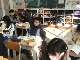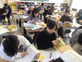 5年生 心情を表す言葉(2組 1月19日) 公開日 2026/01/19 更新日 2026/01/19 各学年から 「ときめく」「ぐっとくる」「心にひびく」などの感動した心情を表す言葉。どんな意味でどのような場面で使うとよいのか、国語辞典を使って調べています。他にも、怒りや緊張、喜びを表す言葉も調べています。 5年