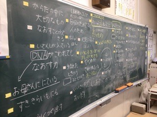 加納小2年生の食育学習のために、2人の方が絵本を作って下さいました。そのお話の読み聞かせを聞いて、「からだの中の細胞はみんなのために働いている」「いらない細胞はない」「細胞が体を守ってくれている」「力を出すにはよく寝て、栄養をとって、よく笑うことが大切だってわかりました」などたくさんの意見が出ていました。