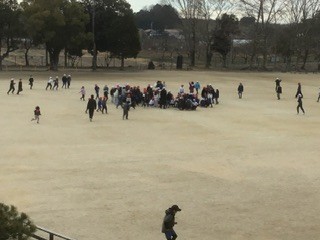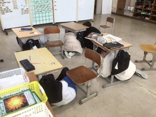 今日は、休み時間中に地震が起きたら…という避難訓練です。図書館、教室、運動場などそれぞれの場所で、どう動いたらよいのか自分たちで考えて避難することができました。