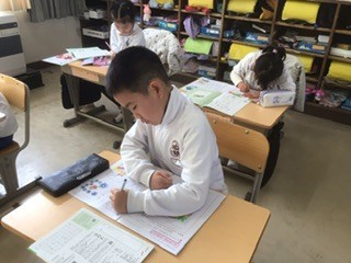 みんな集中して、ひと文字ずつ丁寧に書き込んでいます。
