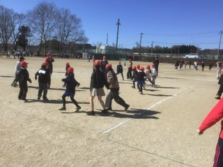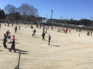 今日のやまももタイムは縦割り遊びでした。少し寒い天気でしたが、みんな元気いっぱい。鬼ごっこやドッチボール、だるまさんが転んだ等の遊びを楽しんでいました。