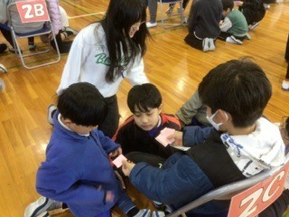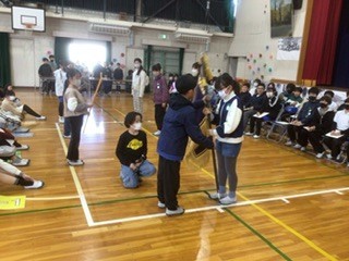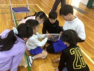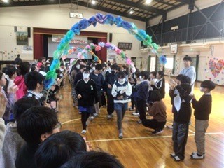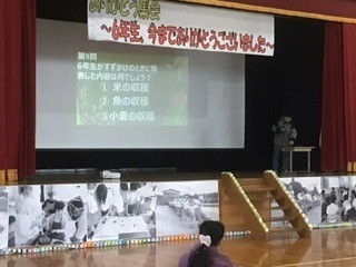 5時間目に縦割りありがとう集会が行われました。この日に向けて、5年生を中心に、全校で準備してきました。6年生が入場した後、まずは思い出クイズで盛り上がりました。その後には、縦割り班のメンバーから心のこもったプレゼントが贈られました。6年生からもメッセージのお返しです。思い出映像や各学年からのお祝いコメント、そして最後には引き継ぎ式も。あたたかな雰囲気の素敵な会になりました。