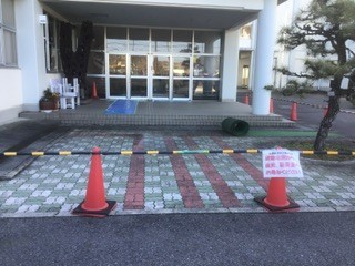 今日から正面玄関のバリアフリー工事が始まりました。4月6日頃まで使用できません。ご用のある方は、運動場側から直接職員室へお声がけください。