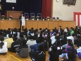 1、3、5年生代表の作文発表がありました。3人とも大きな声で堂々とした発表でした。その後修了認定。そして、生徒指導の先生から春休みの過ごし方についての話がありました。姿勢良く、静かに聞いています。