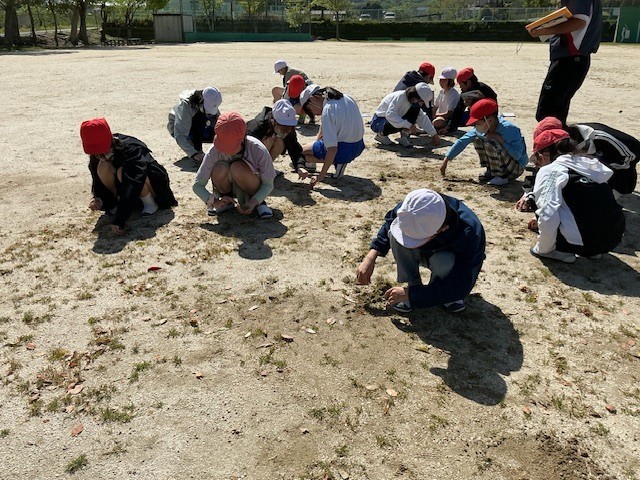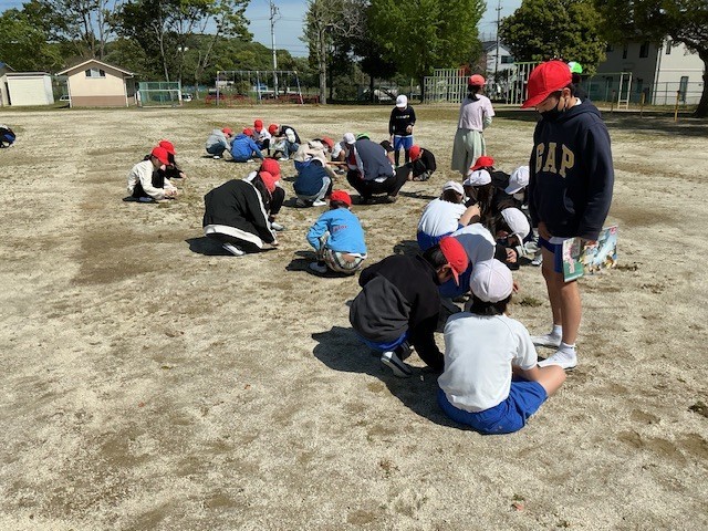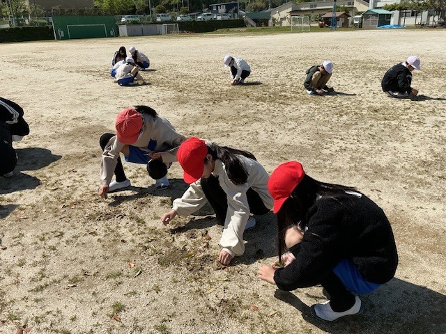 避難訓練後、土で汚れた上履きを拭くための雑巾の準備や、運動場の草取りを6年生がしてくれました。さすが最高学年です。