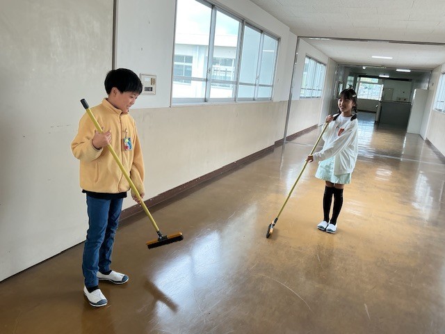 5年生 進んで清掃(4月25日) 公開日 2026/04/25 更新日 2026/04/25 各学年から 今日の授業参観、お家の方を綺麗な校舎で迎えたいと、朝、5年生が校舎内の掃除を進んで行なっていました。素敵な心づかいです。 5年
