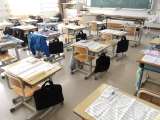 3の2 4時め。 誰もいません。 体育館で縄とびですね。 机上は、みんなきれいに...