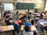 5の2 書写です。 書き初めの手本に中心を書くなどしています。 上手にかくよ!