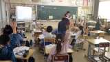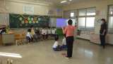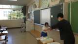 今年度最後の日。 通知表を渡している場面。 4月のスタートのことを説明している場...