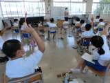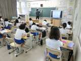 1の1 算数です。 酒井先生が授業をしています。 みんな真剣に勉強に参加していま...