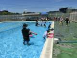 2年生 体育です。 水泳です。 二つのグループに分かれています。 上手になるよ!