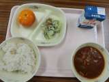 今日の給食です。 ハヤシライスです。 ハヤシライスは日本生まれなんですね。 保健...