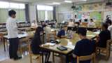 4年生 合同音楽です。 2部に分かれています。 歌声、よくなっています。