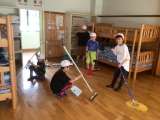 お世話なった宿泊棟の掃除です。部屋はもちろん、廊下や階段の髪の毛ひとつも見逃さな...