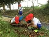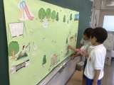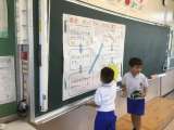 校庭で見つけた生き物を絵に描いて、加納小学校に見立てた模造紙に貼っていきます。ど...