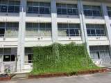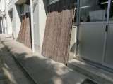 職員室の窓。 「よしず」でお日様の光と暑さを遮っています。