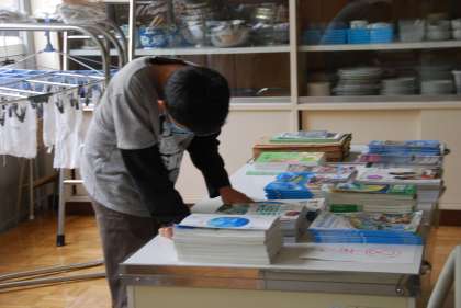 今日は明日の入学式のために、新6年生の皆さんが準備に来てくれました。朝からとってもさわやかな挨拶が校舎に響きました。時間で区切って、会場や1年の教室の準備をするグループ、教科書を数えるグループ、清掃をするグループ、花のアーチを作るグループ。そして、会場のすみでは、児童代表のあいさつを練習する6年生の姿も…。和やかに、それでいててきぱきと仕事をこなしてくれました。リーダーさんたち、頼もしい姿をありがとう!
