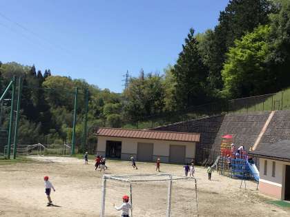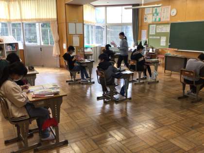 真剣な表情で教科書に記名をしている子たちもいました。放課には、多くの子が運動場で遊びました。元気な笑い声が響いています。