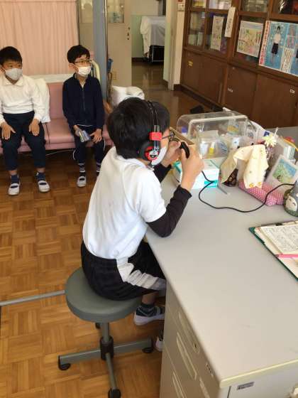 4月には全校の身体測定が行われます。自分の体について理解を深め、健康について意識を高めるためです。今日は5.6年生の身体測定がありました。養護教諭の先生のお話を聞いた後、順番に測定しました。視力検査や5年生の聴力検査では、一つ一つの質問に慎重に答える子どもたちでした。