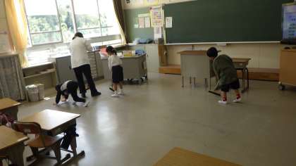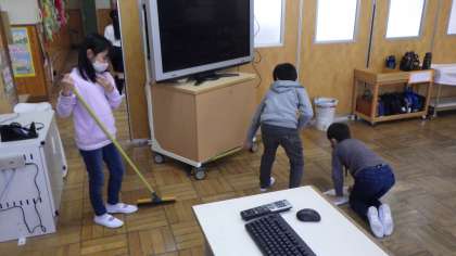 掃除が始まって、4日がたち少しずつ自分の当番の掃除に慣れてきました。とても上手にほうきを使ったり、床を磨くことができるようになりました。