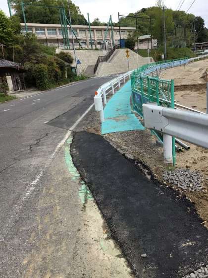 実は歩道に入る手前に、水たまりになる大きなくぼみがあり、雨のたびにボッチャンと靴を濡らす子どもたちが多かったということです。そんな様子を見かね、工事業者の方に埋めてもらえるようにお願いしてくださったおかげで、写真のように雨でも大丈夫な歩道になりました。しかも、工事業者の方にお礼までしていただいたようで、大変恐縮しました。