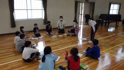 第1回わくファミ活動がありました。わくファミ活動は、縦割り班での活動です。いろいろな学年のお友達ができるとても楽しい活動です。今日は、一人ひとり自己紹介をしたり、「ふるさと探し」の活動計画を6年生から聞いたりしました。とても楽しく活動しました。