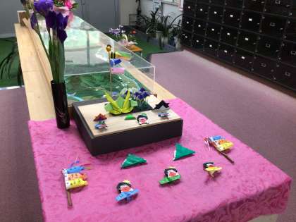 写真は、校務手さん制作の季節を感じる折り紙コーナー