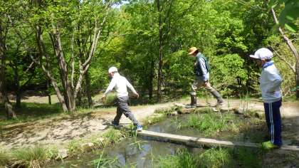 狭い木の上を歩いて渡ったり、カエルの卵やオタマジャクシを見つけたり、まだまだ冒険が続きます。