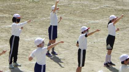 今日も暑い日でした。高学年は運動場で応援の練習をしました。腕がまっすぐにぴんと伸びています。明日の朝からは低学年の教室へ応援歌の練習に出かけます。今日の練習を生かして、きっと堂々と伝えることができるでしょう。頑張れ!6年生!