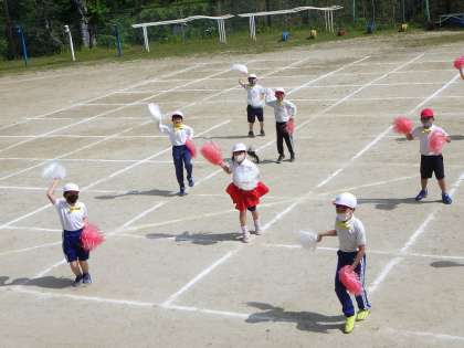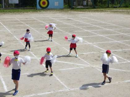 先生が作ってくださった蝶ネクタイやスカートを可愛らしく身に付けて、ビデオを撮ってもらいました。みんなうきうきにジャンプしていました。11月には素敵な姿をお家の人にも見せたいです。