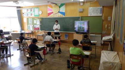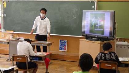 5年生の国語の授業です。新出漢字の練習をデジタル教科書を見ながら行いました。
